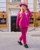 Костюмът е качествено ушит с идеална кройка, съчетаващи стил и функционалност. Топъл базов комплект с джобове тип "Кенгуру" разполага с капюшон на копчета. Горната част е свободна, в стил oversize, с модерен спуснат ръкав. Панталоните имат висока талия с ластик и удобни джобове в страничните шевове, което ги прави идеални за ежедневно носене и спортни активности. Перфектен избор за комфорт и стил през студените дни!