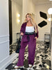 Този стилен комплект е изработен от мек велур-спорт (вискоза и памук), осигуряващ комфорт и гъвкавост. Комплектът включва скъсен суичър с цип, качулка и ластик на ръкавите и подгъва. Панталоните са с права кройка и еластична талия за удобство. Дължина на панталоните: 107 см по външния шев и 77 см по вътрешния.