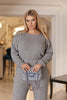 Гащеризон от трикотаж с луксозна тъкан, която е мека и приятна на допир, с отлична еластичност. Панталоните са с еластичен пояс за допълнителен комфорт, а горната част има свободен крой с дълги ръкави, завършващи с маншети. Този гащеризон съчетава стил и удобство.