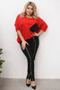 Модерен комплект, съчетаващ стил и комфорт. Блузата е със свободна кройка и декорирана с джоб на гърдите от пайети, което придава блясък и елегантност. Панталонът тип клин е с ципове отпред, добавяйки модерен акцент към визията. Идеален за неформални излизания или ежедневие, когато искате да изглеждате стилно и да се чувствате удобно.