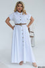 Дълга ленена рокля с колан, изработена в стил тип риза. Роклята има къси ръкави с подгъви и закопчаване с копчета по цялата дължина. Талията е подчертана с колан. Свободният крой и леката материя правят роклята комфортна и универсална за летния гардероб. Идеална за топлите дни, съчетаваща стил и удобство.