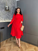 Разкроена миди рокля с волани, придаваща изисканост и елегантност. Роклята има красиви волани в долната част и дълги ръкави, които я правят подходяща за различни поводи. Закопчаването с цип отзад осигурява перфектно прилягане. Тази рокля е идеален избор за стилна и елегантна визия.