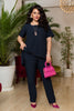 Елегантен и удобен комплект, състоящ се от туника и панталон. Туниката е с трапецовиден, свободен силует и класическо кръгло деколте. Дизайнът ѝ е стилен и практичен – предната част е по-къса от гърба, който е прав и елегантен. Тази кройка перфектно прикрива несъвършенствата и подчертава предимствата на фигурата.