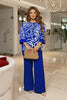 Комплект от широк панталон и принтирана блуза – стилен и женствен избор! Лек и удобен, с висока талия и модерна кройка. Блузата е с свободен силует и обло деколте, а панталоните с висока талия и широка кройка подчертават елегантността на силуета. Качествената и комфортна материя осигурява перфектно прилягане, а универсалният дизайн прави този комплект подходящ за всякакви поводи. Истински must-have за модерната жена!