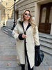 Модерно палто от мек еко каракул без подплата – удобно и стилно за всекидневието. Качулката и вътрешната част са изпълнени в черно, което придава елегантен контраст и усещане за уют.