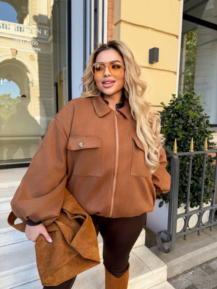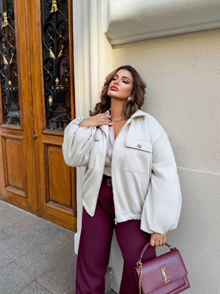 Много стилен бомбър с широки ръкави и подплата, изработен от висококачествена велурена материя с 200 г синтепон – топъл и модерен избор за хладните дни.