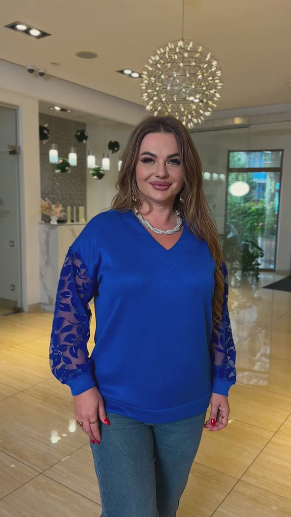 Ефектен джъмпер с широка кройка и V-образно деколте. Ръкавите са леко спуснати и завършват с маншет, а долният ръб е оформен с планка за завършен силует.