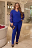 Дамски костюм – съчетание от елегантност и комфорт. Комплектът включва стилна блуза и прави панталони, перфектен избор за официални и празнични поводи.
