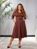 Стилна разкроена рокля с колан, създадена за изискани и модерни визии. Роклята в А-силует е изработена от висококачествена костюмна тъкан, осигуряваща елегантност и удобство. Закопчава се с копчета, придавайки класически вид и лесно регулиране. Ръкавите са в стил реглан, което добавя допълнителен комфорт и свобода на движение. Коланът акцентира на талията и завършва визията с изтънченост. Идеална за официални събития или специални поводи, тази рокля съчетава модерен дизайн с високо качество на материалите.