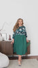 Тази елегантна рокля е създадена от комбинация на две материи, което ѝ придава изтънченост и комфорт. Горната част е изработена от нежна коприна, която красиво пада по тялото, а долната част – от костюмна материя, която запазва формата си и придава обем. Вталената талия подчертава силуета, а ръкавите 3/4 с ластици на китките добавят лекота и елегантност. Комплектът включва текстилен колан, който ще ви помогне да създадете идеални пропорции. Тази рокля ще бъде стилно допълнение към гардероба ви, като е идеална както за ежедневието, така и за специални поводи.