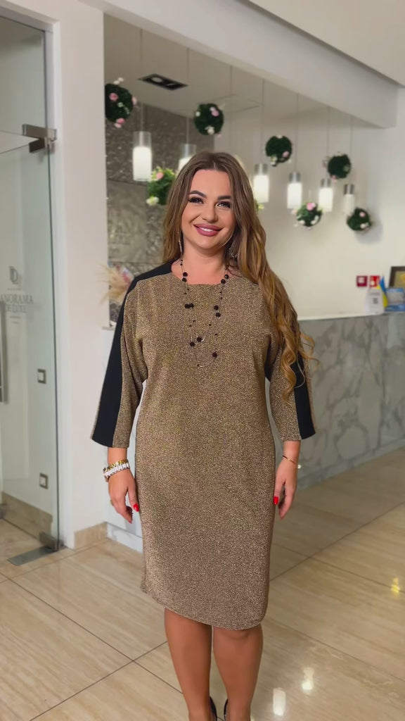 Стилна дамска рокля, изработена от висококачествен плат. Моделът е с прав силует и без подплата, с ръкави тип „прилеп“. Подходяща както за официални поводи, така и за делови срещи – удобна, практична и с елегантно излъчване.