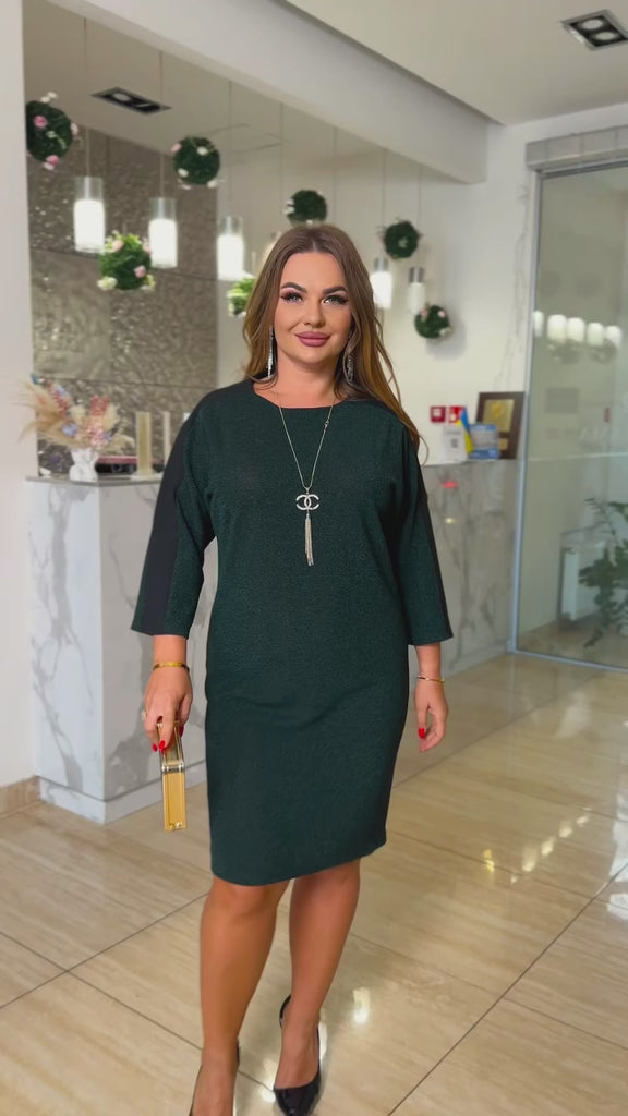 Стилна дамска рокля, изработена от висококачествен плат. Моделът е с прав силует и без подплата, с ръкави тип „прилеп“. Подходяща както за официални поводи, така и за делови срещи – удобна, практична и с елегантно излъчване.