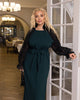 Елегантна дълга рокля с мрежести дълги ръкави, миди дължина и стилна странична цепка. Моделът е с колан, който подчертава талията, създавайки изискан и женствен силует. Подходяща за официални и специални поводи.