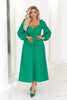 Елегантна разкроена рокля с миди дължина, изработена от лека и комфортна материя. С отворено деколте тип "прегърни ме", дълги ръкави с ластик и плавна линия, подчертаваща женствеността. Подходяща за специални поводи и ежедневна елегантност.