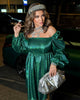 Къса разкроена рокля с дълъг ръкав, която може да се носи както с открити, така и с покрити рамене благодарение на ластик по деколтето. Ластикът на талията подчертава силуета, а материята красиво играе с светлината, придавайки блясък и елегантност на визията.