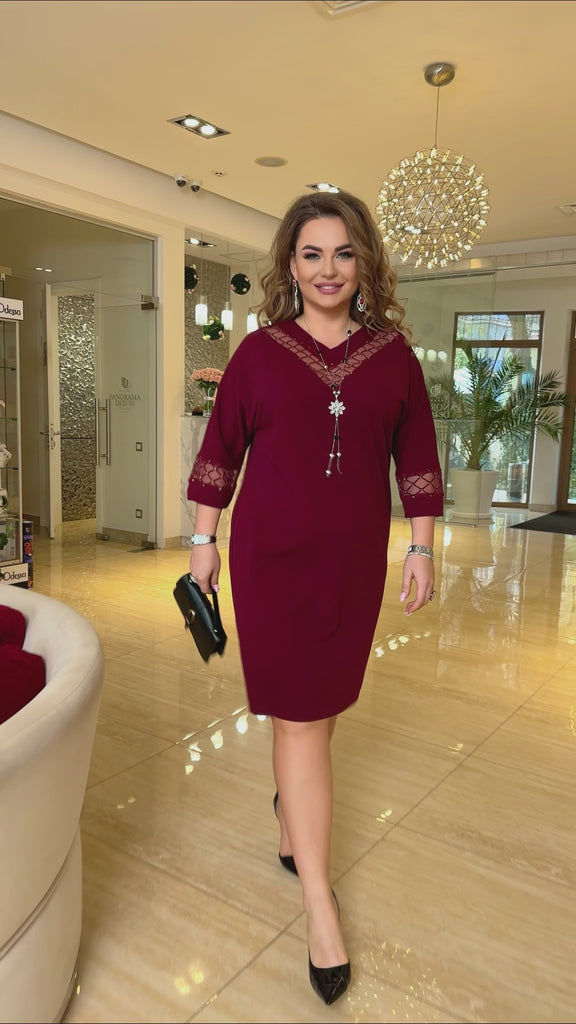 Рокля в права кройка с мрежа и ефектен А-силует. Това е празнично и елегантно облекло, украсено с мрежови вложки с блестящо покритие, които подчертават индивидуалността и изяществото на своята притежателка. Силуетът на роклята нежно прикрива несъвършенства по фигурата и акцентира върху нейните предимства.