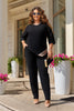 Дамски комплект с актуален дизайн, подходящ за гардероба. Блузата е с полуприлепнал силует, изработена от мека материя с гладка кадифена текстура, приятна на допир. Лесно се комбинира и подчертава индивидуалния стил.