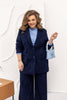 Този стилен кадифен жакет съчетава класика и модерна текстура. Меката материя с изразителен рипс придава дълбочина и елегантност на визията, а добре обмисленият крой осигурява перфектно прилягане. Жакетът е с подплата, подплънки на раменете и просторни джобове (джобовете са зашити – преди употреба трябва внимателно да се разпорят). Дългите ръкави са прави, закопчаването е с две копчета, а вертикалните и хоризонтални шевове оформят женствен силует и подчертават фигурата. Лесно се комбинира с панталон или пола за официален или по-ежедневен стил. Коланът не е включен в комплекта.