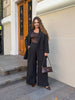 На панталона отзад има ластик. Сакото е без закопчаване и без подплата.