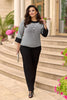 - Дизайн: Стилна комбинация от кофта и панталони.