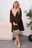 Къса рокля със свободна кройка от велур, с триъгълна кожена вложка на деколтето. Ръкавите са с ластик за удобство и комфорт при носене.