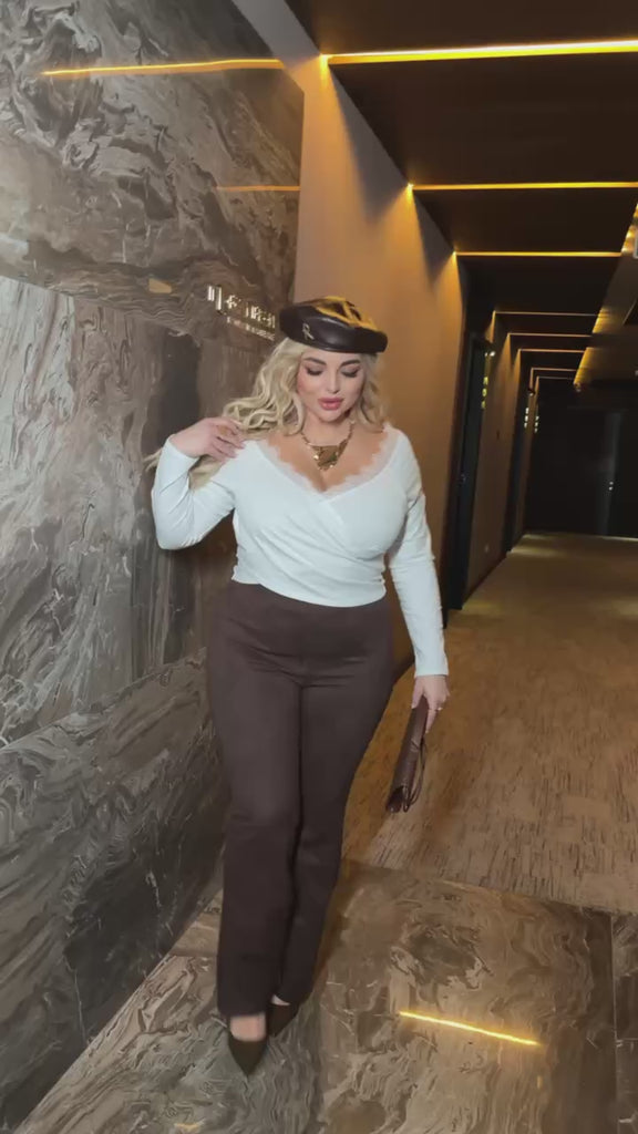 Блуза от еластичен деним-бенгалин, която прилепва идеално по фигурата. По раменете и ръкавите има ластик, който позволява да се носи както с открити, така и с покрити рамене.