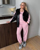 Стилен спортен комплект от три части – бомбър, тениска и джогъри с качествен принт. Бомбърът се регулира с ластик в долната част, тениската е оувърсайз, а джогърите също са с ластик в края за по-добро прилягане. Ефектният накат придава ярък и модерен акцент на визията. Изработен от висококачествена еко кожа и трико – гарантира комфорт и отлично качество.