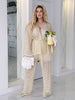 Дантелен комплект от меко ажурна дантела. Панталоните са с подплата тип къс панталон, с висока талия и ластичен колан. Дължина 77/110 см. Жилетката се носи прехлупена и се връзва с колан. Ръкавите са широки с подвижни връзки за промяна на формата.