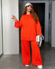 Комплект от трикотаж със свободна кройка – блуза с декоративен джоб и панталон с ластична талия и широки крачоли. Удобен и стилен модел за комфортни и ежедневни визии.