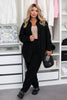 Трендов комплект оверсайз – свободна риза и панталони с висока талия. Панталоните имат джобове отпред и отзад за удобство и стил.