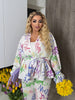 Комплект от риза и панталон от софт — лека, приятна на допир, почти не мачкаща се материя. Панталоните имат висока талия и пояс на ластик, с дължина 77(вътрешен шев)/110(външен шев) см. Жилетката е тип "прегърни ме" и се завързва с колан. Ръкавите са широки и имат възможност за промяна на формата чрез свалящи се завързвания. Идеален избор за стилен и удобен вид.