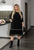 Рокля с права кройка и миди дължина. Дизайнът включва волан в долната част. Отзад по цялата дължина има копчета. В страничните шевове са вградени джобове