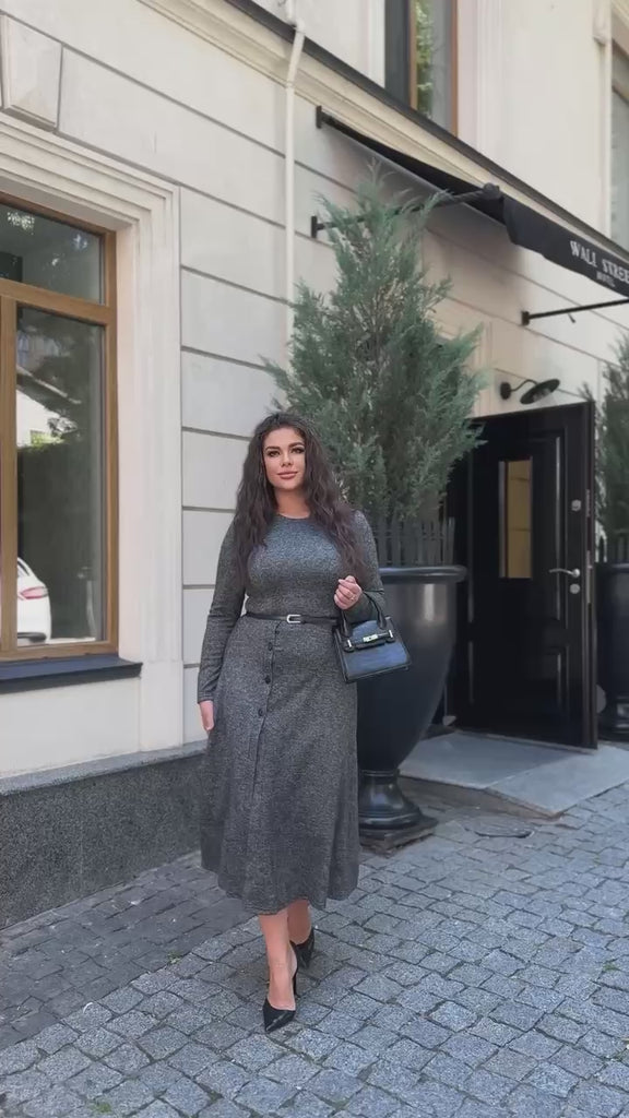 Елегантна миди рокля от трикотаж — удобна, еластична и същевременно стилна. Вертикалната платка с копчета оптически издължава силуета, а коланът подчертава талията. Моделът съчетава перфектно комфорт и женственост.