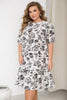 Памучна рокля на цветя – ефирна, лека и нежна. Свободната кройка осигурява комфорт, а материята пада меко по тялото. Късите ръкави с ластик придават фин акцент, а долният волан добавя игривост към силуета. Подходяща за разходки, срещи или моменти, когато искаш да се чувстваш женствено. На модела е размер 4XL–5XL.