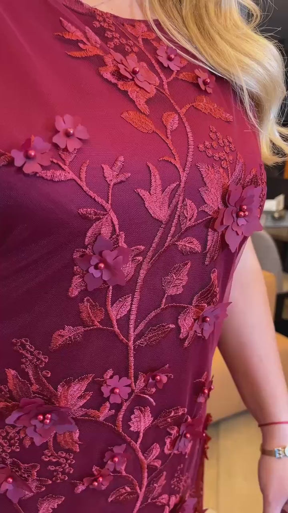 Къса вечерна рокля с предна част от мрежа, украсена с цветя и с подплата, а гърбът е от еластична материя за удобно прилягане. Идеална за специални поводи, празнични вечери или стилни излизания, когато искате да блеснете и да привлечете всички погледи.