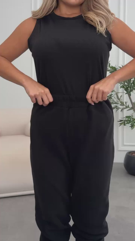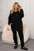 Комплект от три части включва дълго горнище с качулка и прави панталони от флийс, комбинирани с трикотажен топ от рипсен плат. Меката и топла материя осигурява комфорт и свобода на движение, а стилният дизайн прави комплекта подходящ за ежедневни активности и разходки.