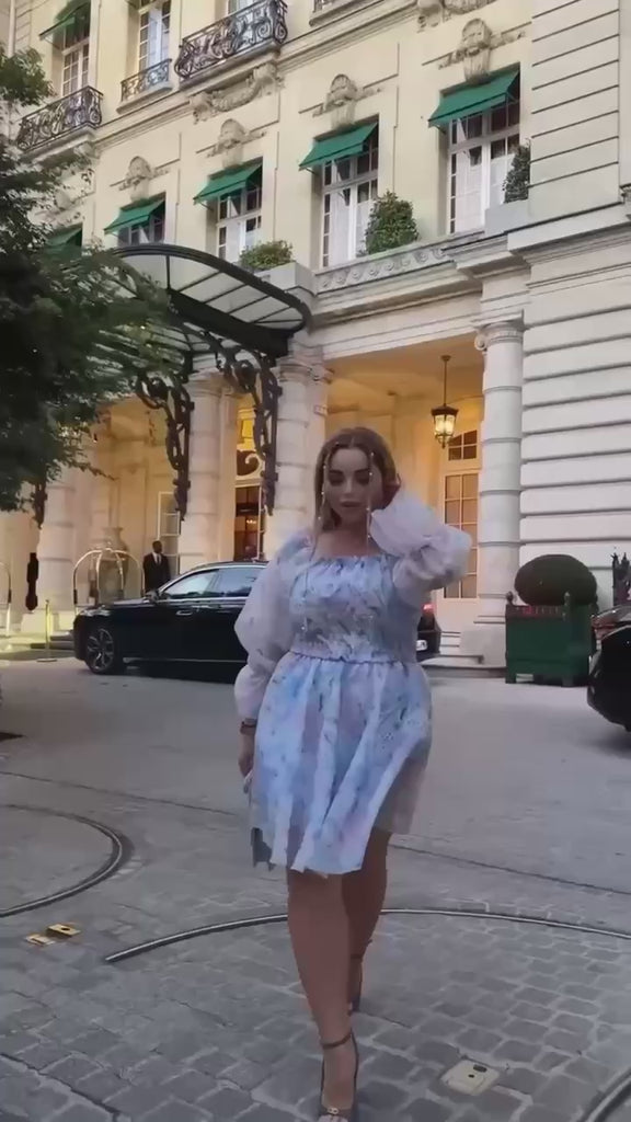 Къса рокля от органза на цветя