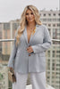 Детайлите са прецизно подбрани — стилни копчета, декоративно перо на ревера и функционални джобове. Удължените ръкави добавят изтънченост, а моделът е без подплата за по-лека и комфортна визия.