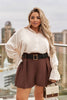 Тези стилни шорти с висока талия са перфектен избор за модерна и елегантна визия. Моделът е с широки крачоли и леки плисета, които създават изчистен силует и подчертават талията. Изработени от качествена материя, осигуряваща комфорт през целия ден.
