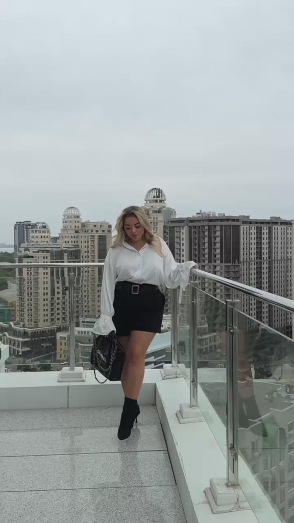 Тази елегантна риза ще се превърне в акцент във вашия гардероб. Изработена е от лека и фина материя, която красиво пада по тялото. Впечатление правят дългите разкроени ръкави с набори и връзки на маншетите, които придават романтичен и изтънчен вид.