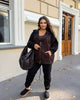 Ватиран дамски комплект от трикотаж с каракул – топъл и удобен спортен костюм в oversize стил. Худи с качулка и цип с регулируема дължина и панталон с висока талия и джобове.