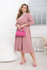 Представяме ви нашата едноцветна разкроена миди рокля с кръгло деколте, която впечатлява със своята простота и елегантност. Роклята е със скъсени ръкави 7/8 с ластик, които осигуряват комфорт, докато добавят оригинален акцент към образа. Вталената талия с ластик, която може да бъде подчертана с включения в комплекта колан, придава стил и акцентира фигурата.