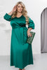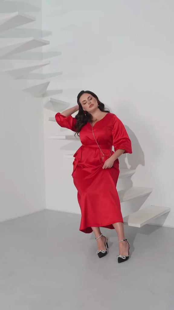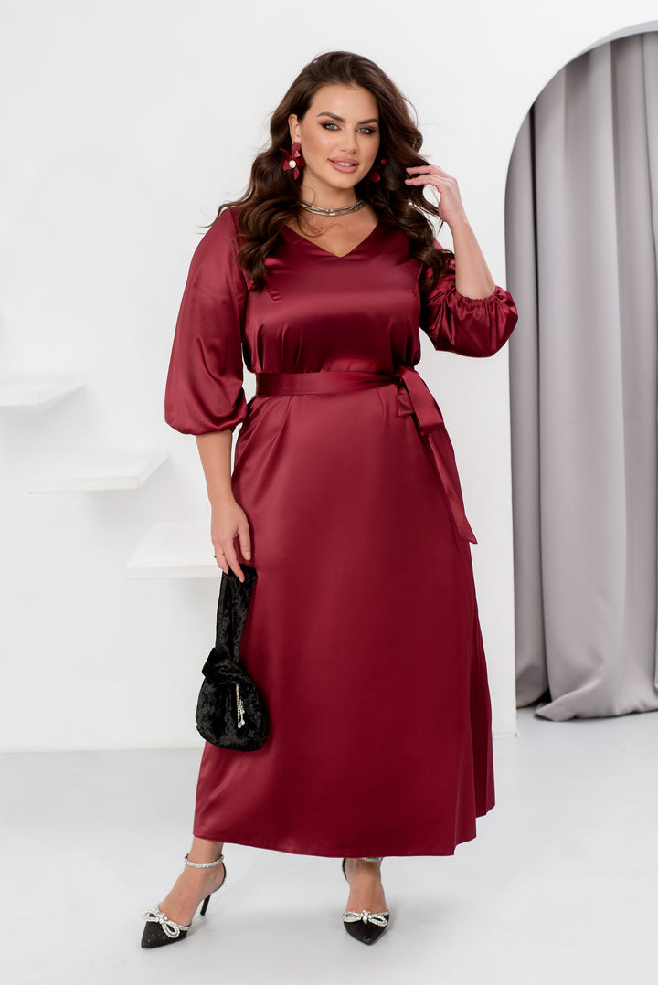 Празнична макси рокля, създадена за специални моменти и незабравими тържества, като например посрещането на Нова година. Елегантният й дизайн подчертава изтънчеността и женствеността ви. Удобните ръкави 3/4 с еластични маншети добавят практичност, а V-образно деколте създава грациозен акцент. Включеният текстилен пояс подчертава талията и завършва визията. Гърбът е украсен с елегантен шев по цялата дължина. Тази рокля е идеалният избор за празничната нощ, когато искате да изглеждате луксозно и да се чувствате специално.