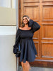 Къса рокля с ръкави – стилна и удобна, с ластици, които подчертават фигурата без да ограничават движенията. Долната част е укрепена с регилин, придаващ форма и обем за елегантен, разкроен силует. Перфектен избор за изискани събития и специални поводи