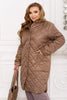 Капитонираното яке със средна дължина, висок яка и дълги ръкави с ластик съчетава комфорт и стил. Обемните джобове и заобленият подгъв с цепки добавят практичност, а универсалният дизайн лесно се комбинира както със спортни визии, така и с ежедневни тоалети.