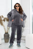 Запознайте се с универсалния спортен комплект в три части, идеален за стилни и удобни визии в по-хладно време. Комплектът включва елек с качулка и джобове, удобна блуза с качулка и спуснати ръкави, както и прави панталони със средна талия и странични джобове. Панталоните са практични и с еластичен завършек, осигурявайки комфорт и стил за активни жени.