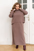 Стилен комплект от рокля и пуловер, който съчетава елегантност и комфорт в една визия. Пуловера с висока яка, дълги ръкави с маншети и спусната линия на рамото придава модерен акцент, а роклята с V-образно деколте и прав силует подчертава фигурата с финес. Еластичната материя осигурява удобно прилягане и пълен комфорт – перфектен избор за парти, официално събитие или специален повод.