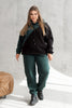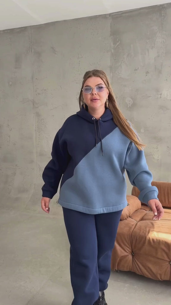 Топъл комплект от ватиран трикотаж — въплъщение на уют и стил. Висококачествената материя приятно обгръща тялото, осигурявайки топлина и комфорт, като същевременно запазва перфектен външен вид: не се разпуска и не губи форма. Суичърът е със свободна кройка и спусната линия на раменете, което придава модерна и непринудена визия. Качулката с шнур през метални халки и фините връзки в долната част създават елегантен акцент. Панталонът с висока талия, мека ластична лента, джобове и маншети добавя хармония и практичност към визията. Този комплект не е просто облекло — той е твоята лична територия на топлина, където стилът и комфортът съществуват в съвършен баланс.