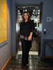 Много стилен и елегантен комплект — идеален за всякакви празници и специални поводи. Блузата е украсена с пайети, а панталоните с удобни джобове и ластик в талията. Платът е еластичен и осигурява комфорт при носене.