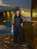 Панталоните тип палацо и блузата с V-образно деколте придават изтънчен и модерен силует. Ефектна визия, с която ще изглеждате изключително шик и уверено!